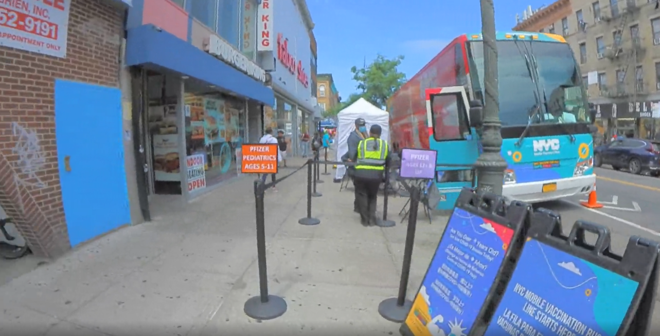 HzB QUESTIONS PHIzER VACCINE BUS STAFF AS IT/THEY SETS UP SHOP IN THE PUBLIC SPACE AND ASSUME AUTHORITY … ??? …