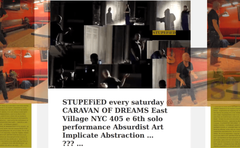 … absurdist art using space and object work while playing multiple characters in an original composition & orchestration – heightening and exploring the every day habituation that we see playing out in our common world experience. Jingi a Vagabond finds a spot in an alley to steal away from the world & have a drink with an imaginary friend – though this welcomed diversion is interrupted by unwelcomed delusions – expressed in this performance as 5 scenes : CLANDESTINE PANCAKES – CAPOTE & SAM – FAMILY COFFEE – SUPERMAN LIBERTY – IMPERSONATION OF MODERN WAR UNCLE KLAUS – all distinctly different stories with the common theme of our conditioning and habituation. We are all human. We are all fallible. We are all responsible. Using the original compositional form IMPLICATE ABSTRACTION the form is content – all transitions are fluid and part of this original orchestration. James ford was introduced to “space” & “object” work via Viola Spolin in the studio with Hal Pellar & fellow players – refining his object work [mime] with Mik Kuhlman & long form reference work with Jeff Michalski- an original composition you will not see again … ??? …
