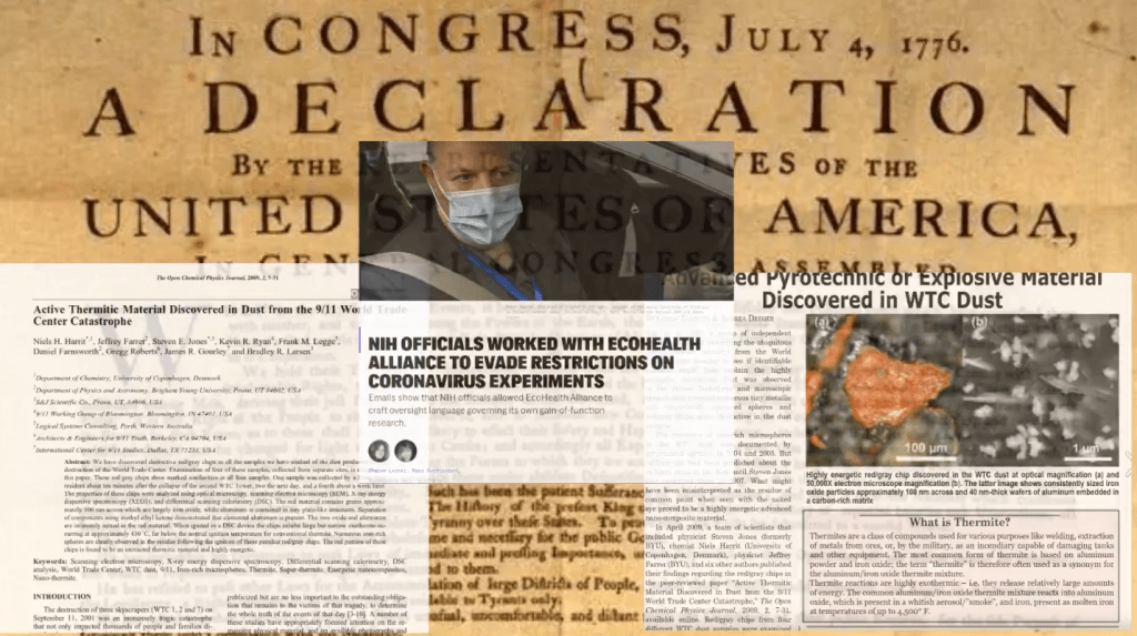 QUESTIONS … WHAT ARE THE SIMILARITY(IES) OF FACTORS FOUND IN BOTH THESE ACTUALITIES ??? 1. THE NANO THERMITE FOUND IN THE DUST OF THE COLLAPSED TOWERS OF 911 & 2. THE GAIN OF FUNCTION FACTORS OF COVID 19 ??? …